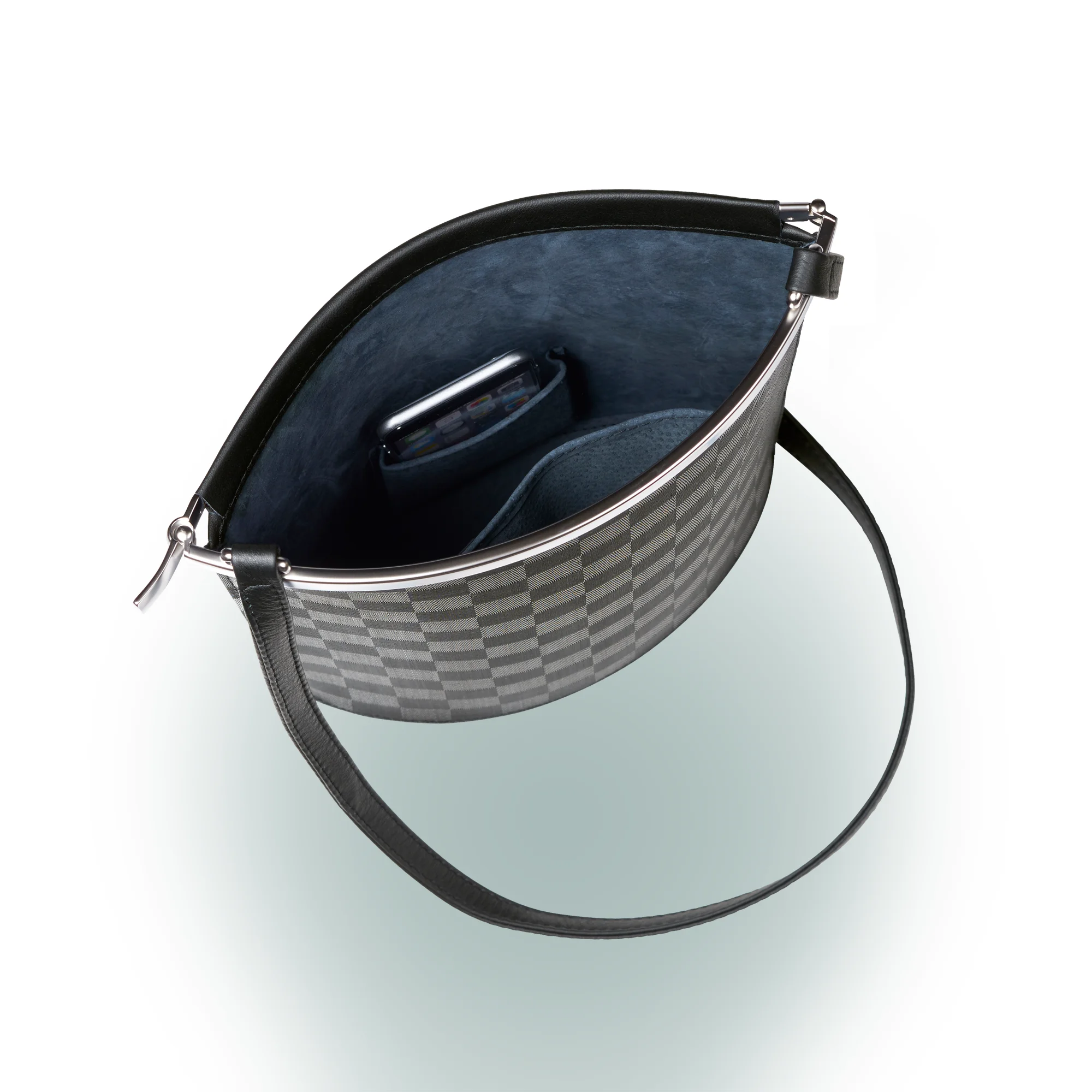 Arcade, Schultertasche. Eine der begehrtesten Olbrish Taschen. In Rosshaar preisgekrönt mit dem "Red Dot Design Award - Best of the best" Der Federstahlverschluss öffnet die Tasche zum Körper hin und ist so Sicherung und Blickfang zugleich.