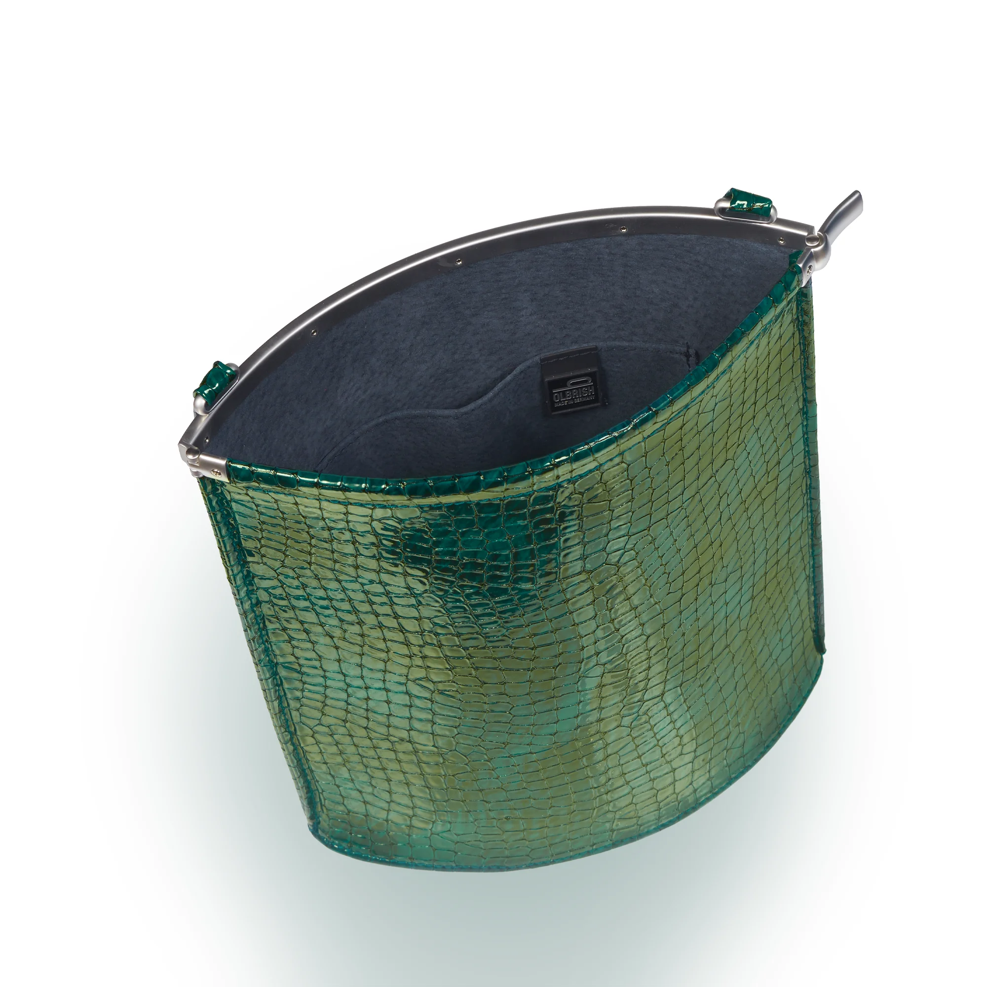 Arcade, Schultertasche. Eine der begehrtesten Olbrish Taschen, hier in streng limitiertem Kroko-Imitat Leder. Die Arcade sichert das Wichtige auf geniale Weise. Der Federstahlverschluss öffnet die Tasche zum Körper hin und ist so Sicherung und Blickfang zugleich. Dieser Link führt Sie zu der Arcade in unserem klassischen Nappaleder.