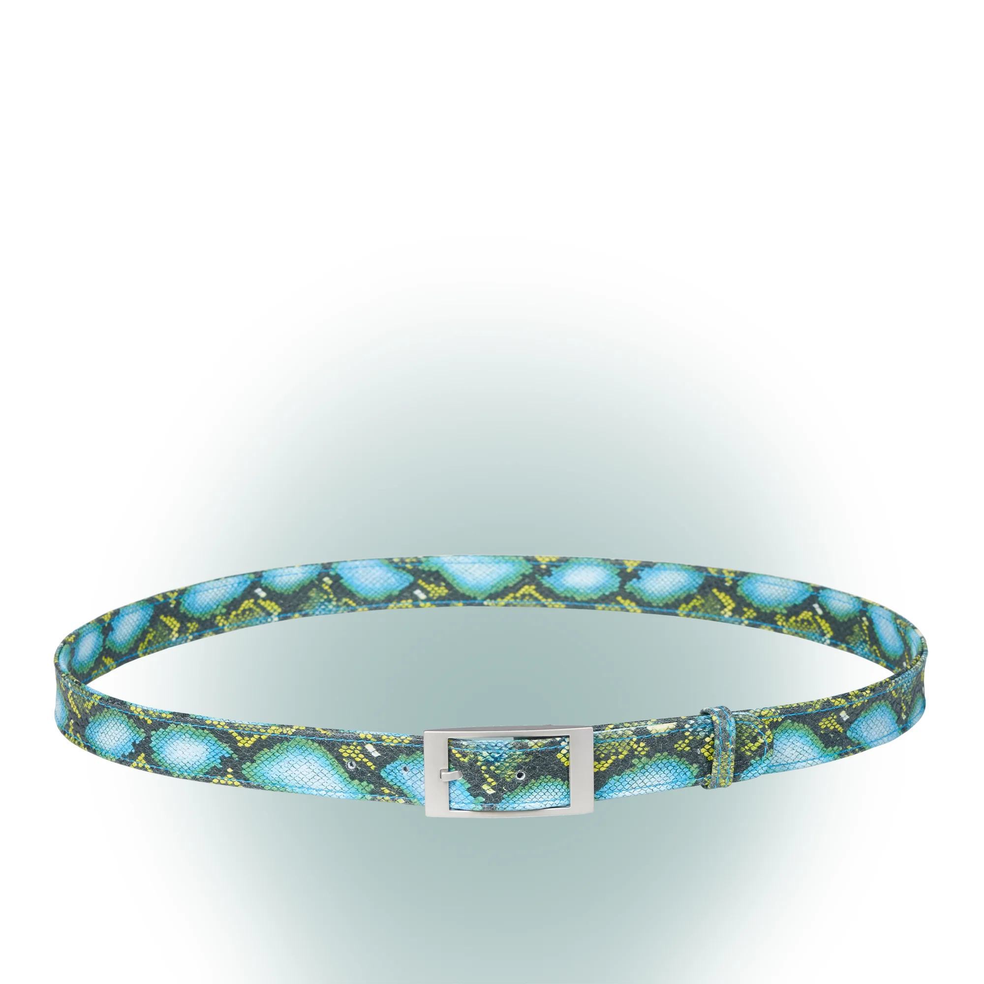 Eden. Matt gebürstete Schließe, mit Leder in Schlangenoptik. Mit klassischem Beschlag aus solidem Druckguss. Individuell in der Länge anpassbar.