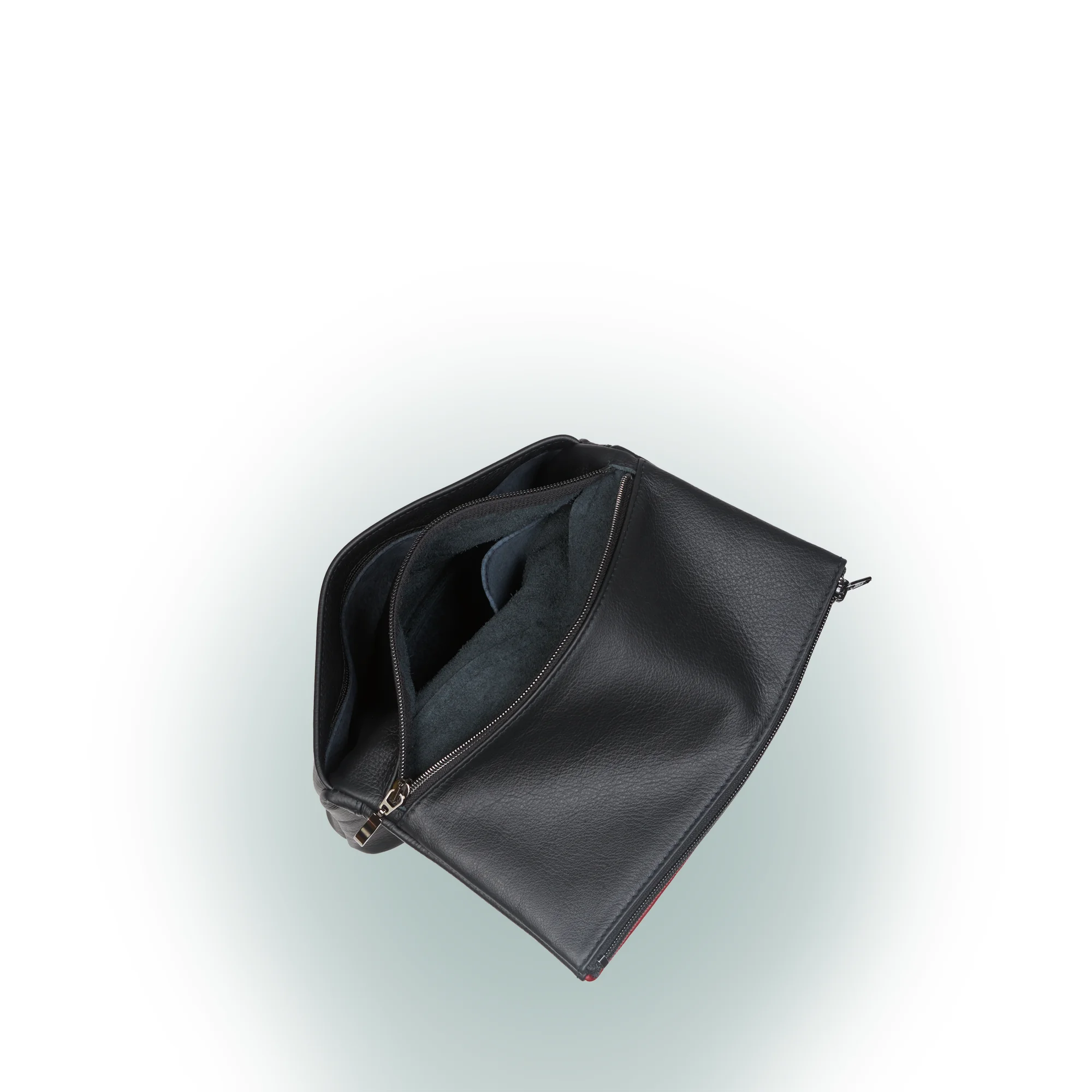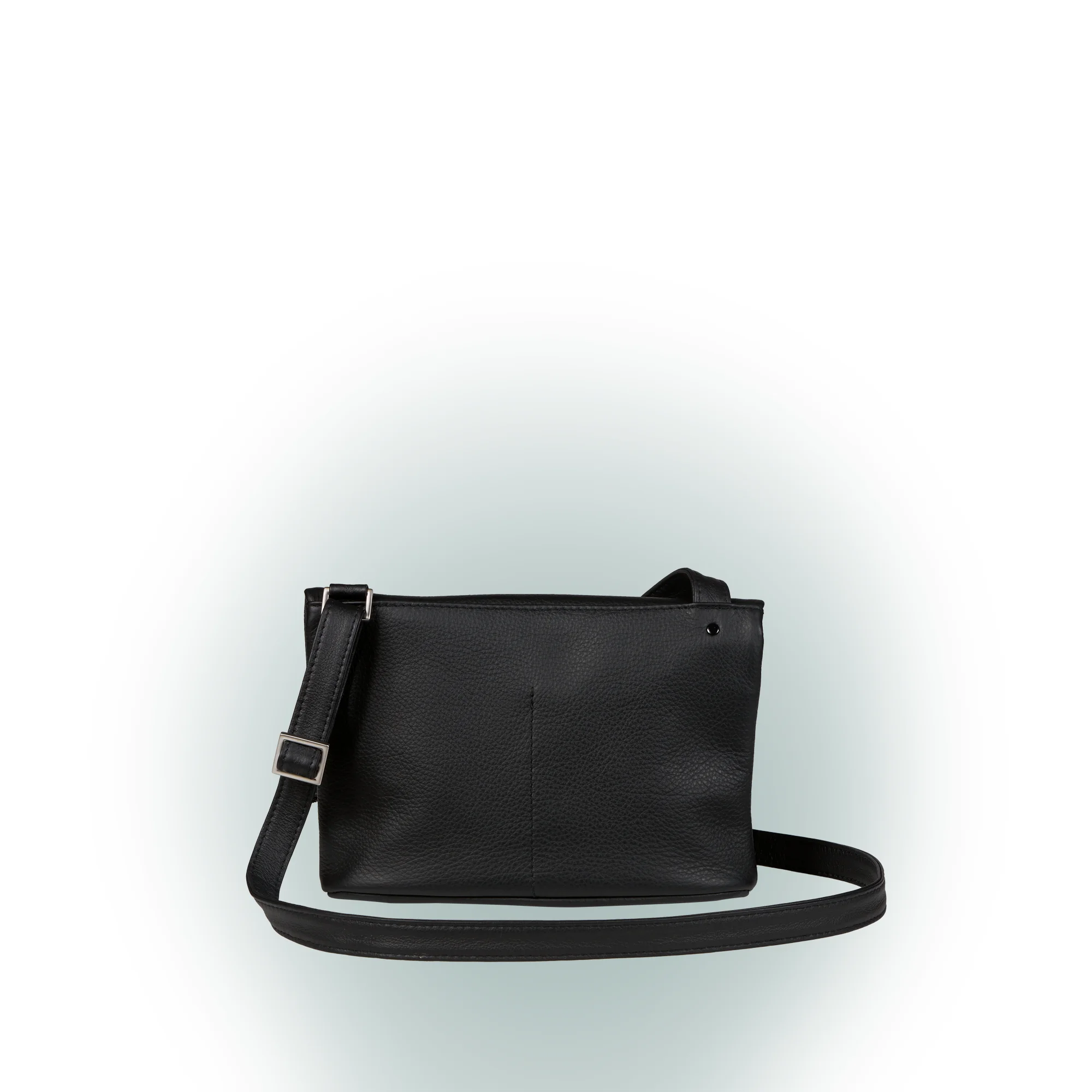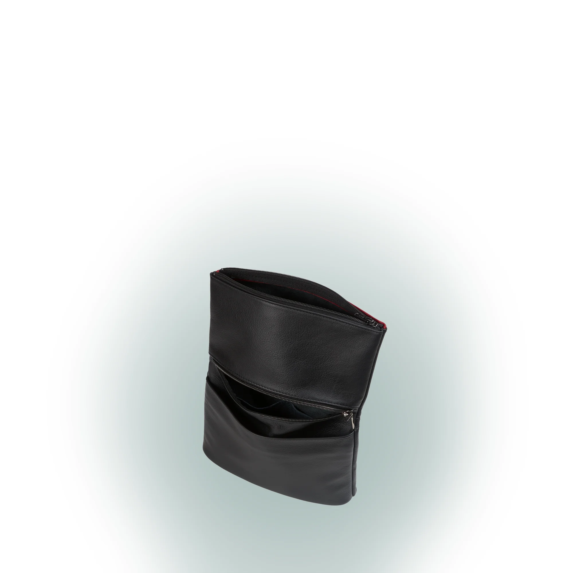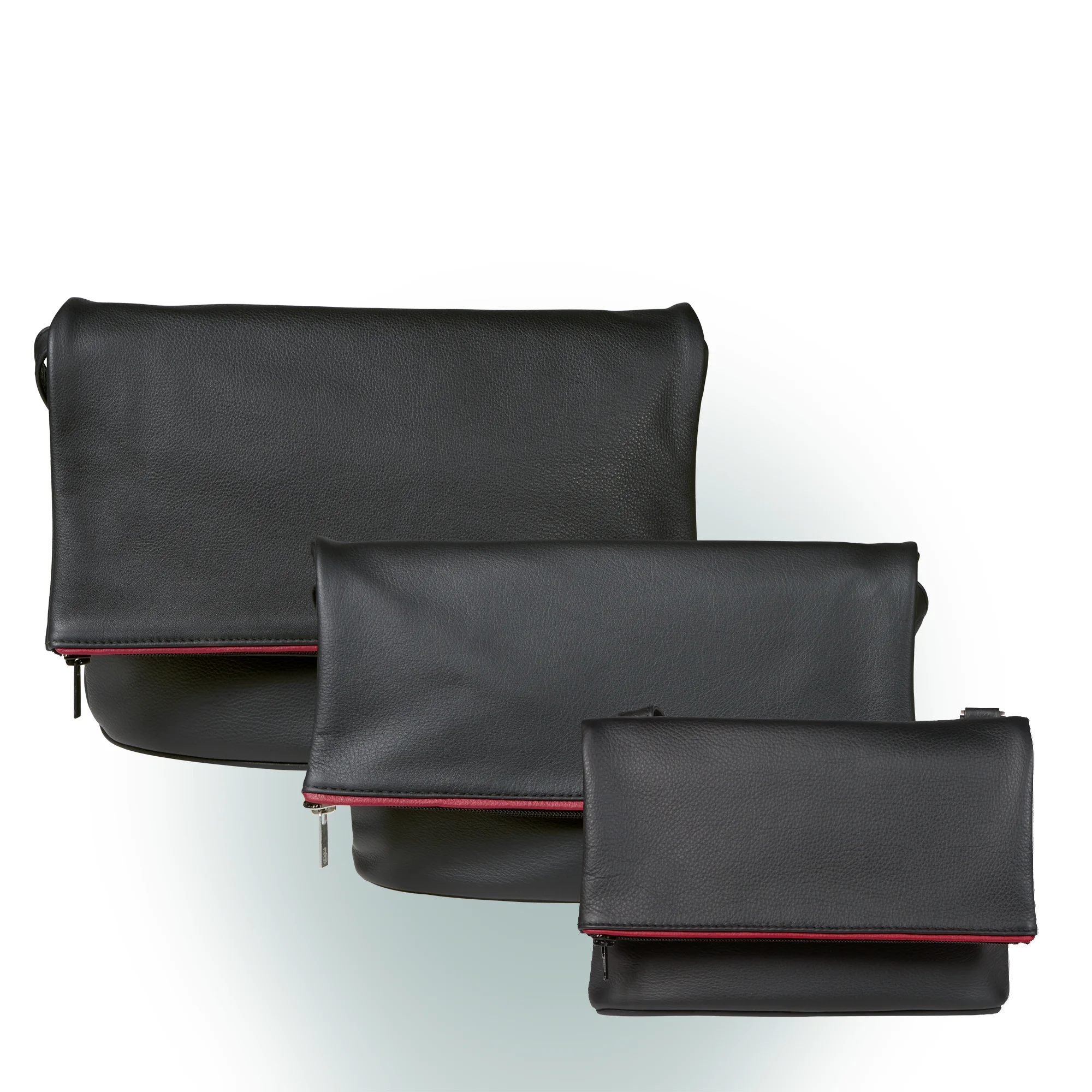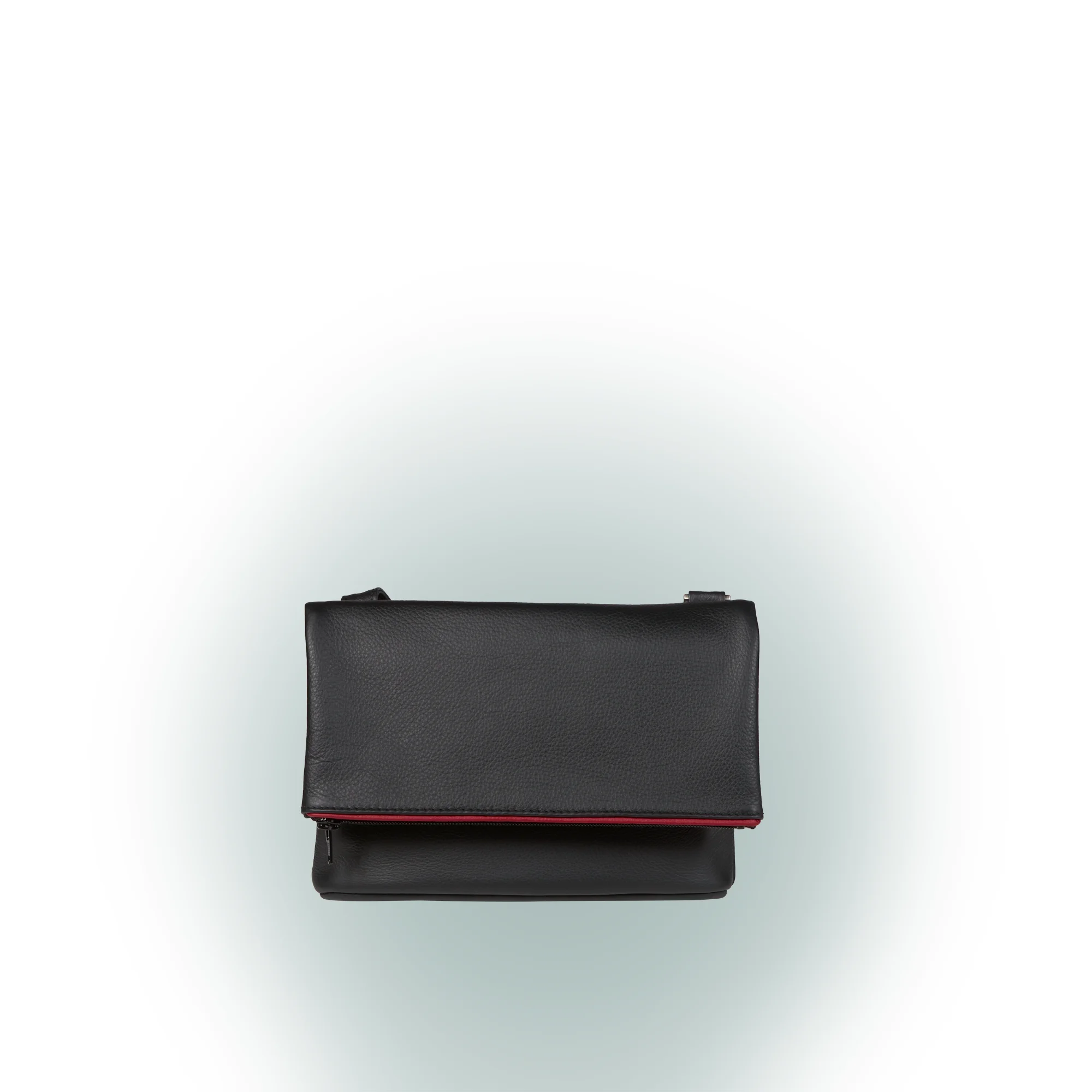 Chamäleon, eine Handtasche, die sich dem Inhalt anpasst: Je mehr in der Tasche ist, umso höher wandert der Überwurf. An das Smartphone kommen Sie durch einen Reißverschluss in der Mitte, die großen Sachen wandern von oben in die Tasche. Zur Sicherheit ein Reißverschlussfach auf der Rückseite der Tasche. Ein Klassiker.