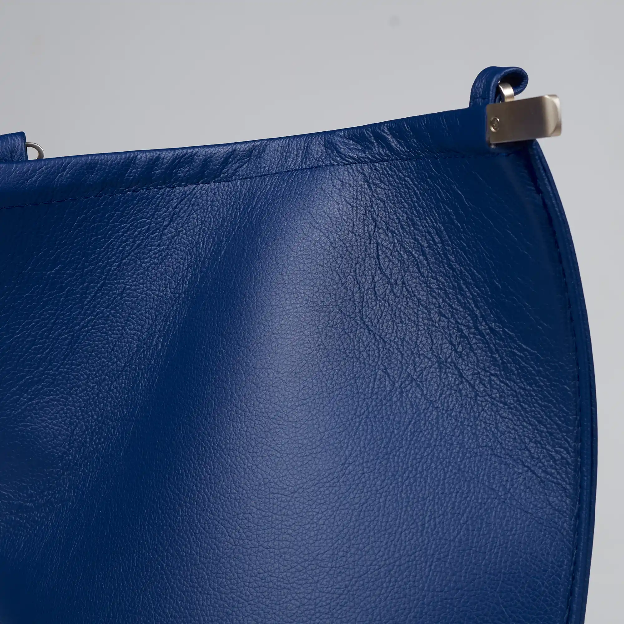 Arcade, Schultertasche. Eine der begehrtesten Olbrish Taschen. Der Federstahlverschluss öffnet die Tasche zum Körper hin und ist so Sicherung und Blickfang zugleich. Dieses Exemplar hat eine stark faltige Rückwand - daher hier als Sonderangebot.